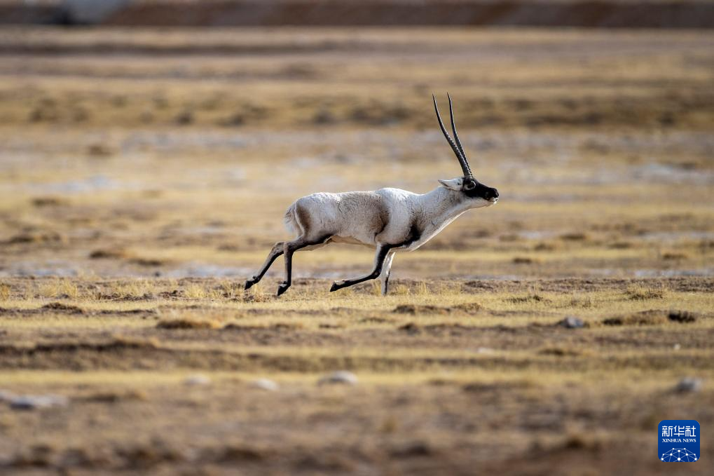 在羌塘國家級自然保護(hù)區(qū),一只雄性藏羚羊在奔跑(12月16日攝)。新華社發(fā)(旦增努布 攝)