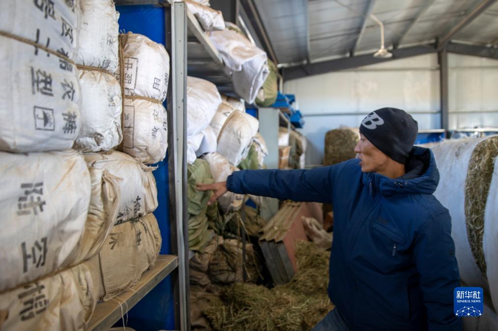 當(dāng)?shù)馗刹吭诙砭绵l(xiāng)農(nóng)牧業(yè)防抗災(zāi)物資儲備庫里盤點(diǎn)物資庫存。這里草料、爐子、棉服、煤炭、除雪工具等一應(yīng)俱全(12月18日攝)。新華社記者 姜帆 攝
