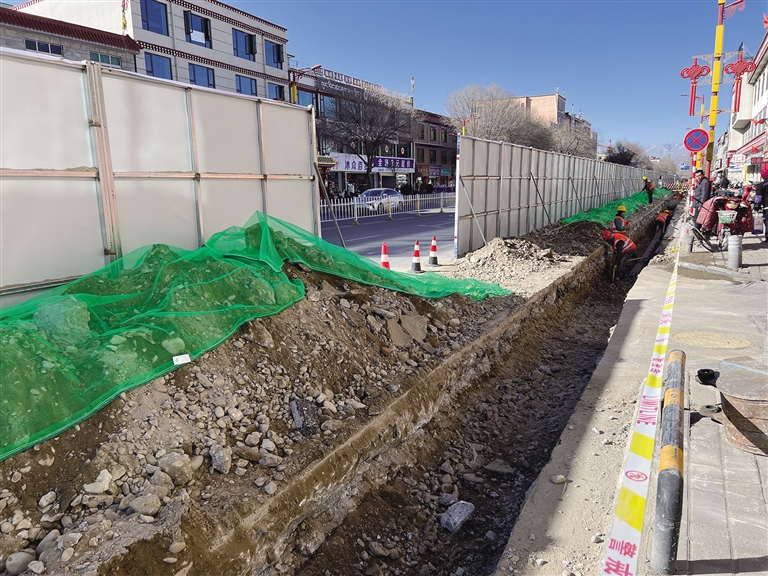 時值深冬,拉薩城中有一群人正如火如荼地忙碌著。12月18日,記者來到納金路,工人們正在進行路面燃氣管道改造。挖掘的泥土被綠色網(wǎng)蓋住,并未四處飛揚,剛澆筑的混凝土都鋪上厚厚的棉被以達到養(yǎng)護效果。四川佳成建設(shè)有限公司負責(zé)此次路面項目,現(xiàn)場管理陳文韜告訴記者:“為了盡快完成工作,還市民一條通暢的道路,我們已經(jīng)將工人分為24小時3班制,在保證安全的前提下加快施工進度,預(yù)計在12月31日左右完成路面的工作?!标愇捻w還表示,路面大部分工程都是通過人工挖掘,噪音不大。如遇見需要使用機器的情況,也會在白天施工,晚上10點前必須停止,爭取做到不給居民的生活帶來困擾。
