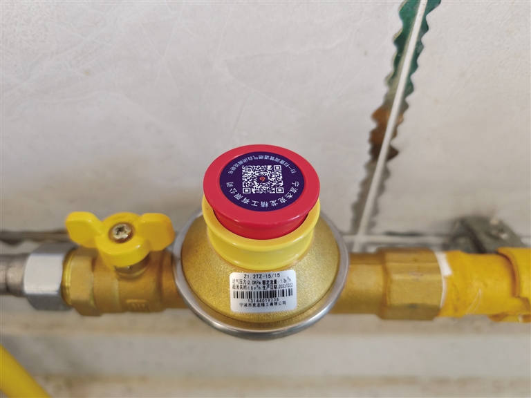 燃氣報警器為白色長方體機器,一般安裝在燃氣表旁。如出現(xiàn)漏氣的情況,燃氣報警器將自動阻斷燃氣主機供氣,并發(fā)出警報聲,提醒居民檢查。燃氣自閉閥安裝在室內(nèi)低壓燃氣管道末端,感應(yīng)到燃氣泄漏后,自閉閥也將自動關(guān)閉。居民下次用氣時,需要手動將自閉閥拔起才能正常使用。燃氣報警器和自閉閥的安裝,可以保障居民家中用氣安全、保護大家的生命和財產(chǎn)安全。