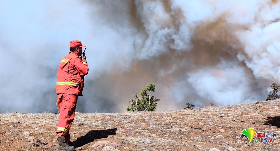 “在高原平地上行走,已經(jīng)相當于其他城市負重40斤。”楊飛介紹,這是高原森林火災(zāi)救援的一大困難。而這場山火因海拔高、水源地距離遠,遠程供水成了最棘手的難題。雖然在山坡上架設(shè)超過15組并串聯(lián)水泵,但依然難以滿足撲火一線的供水需求。