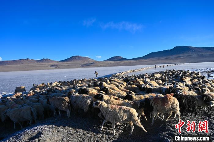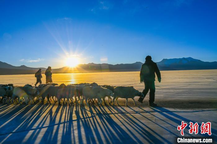 資料圖 :2023年2月,普姆雍錯冰湖趕羊。趙朗 攝