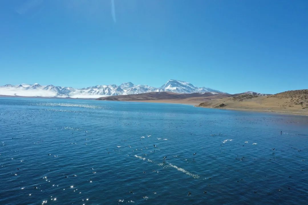 夏季的普莫雍錯,湖水清澈,冬天的普莫雍錯湖面會隨著溫度降低結冰,表層通透可見湖底,裂紋蔓延整個湖面,在陽光的照射下,呈現(xiàn)出極致的藍,美麗又浪漫,有著世界海拔最高、中國最大的藍冰湖美譽,也被稱為“中國的貝加爾湖”,它所擁有的是西藏也是中國最夢幻純凈的藍色。