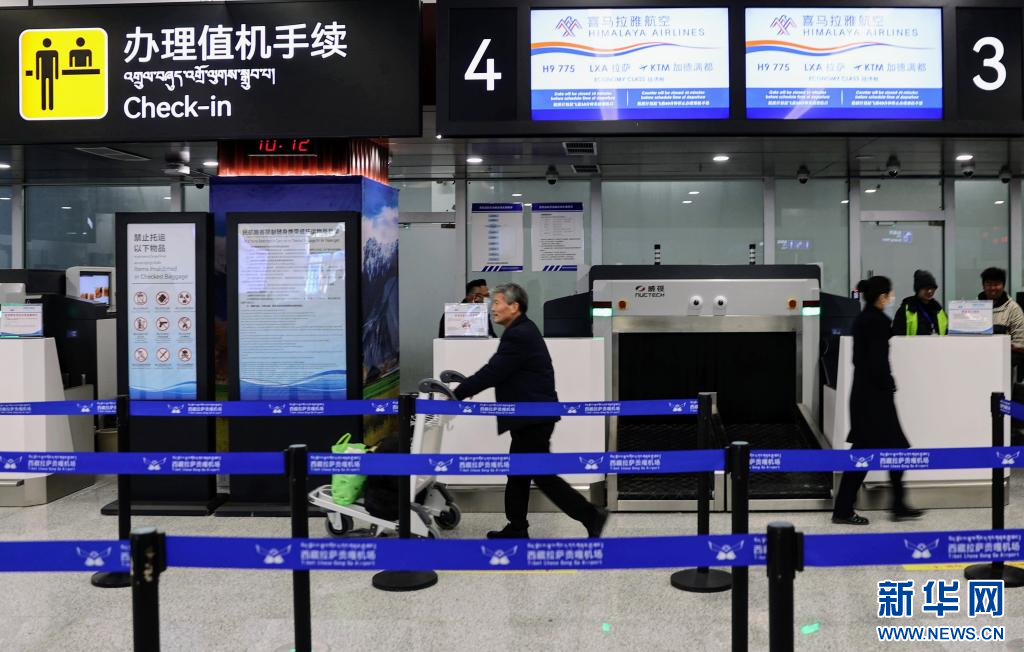 出境旅客正在拉薩貢嘎國(guó)際機(jī)場(chǎng)辦理出入境相關(guān)手續(xù)。新華社記者姜帆 攝