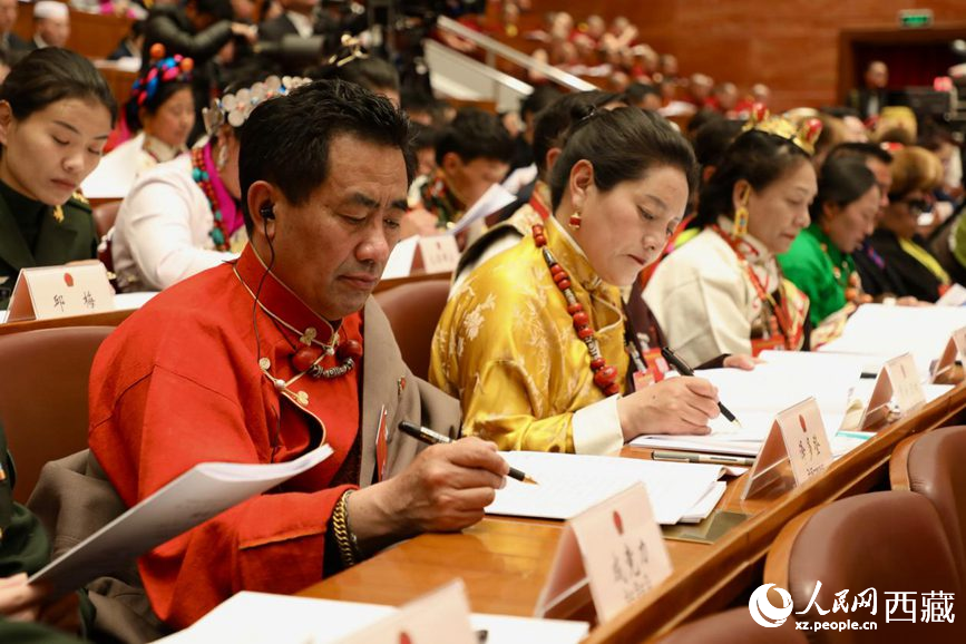 西藏自治區(qū)十二屆人大二次會(huì)議現(xiàn)場(chǎng)。
