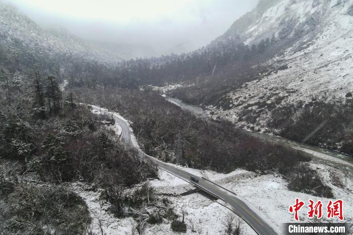 圖為2023年12月18日,大雪中的西藏墨脫扎墨公路。(無(wú)人機(jī)畫(huà)面)中新社記者 江飛波 攝