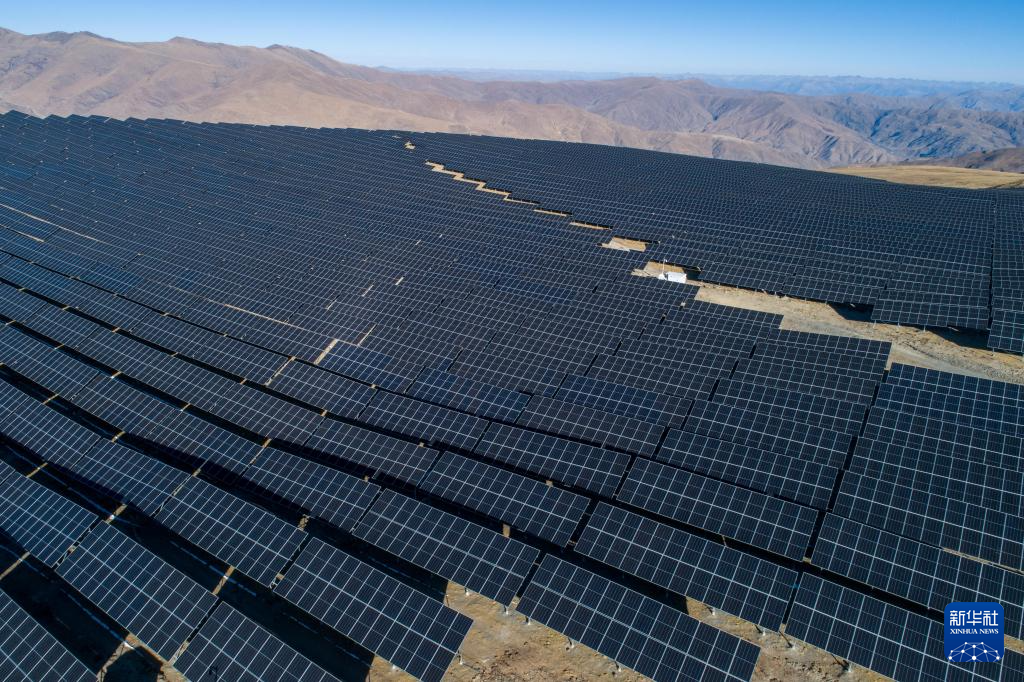 西藏才朋光伏電站(1月15日攝,無人機照片)。新華社記者 旦增尼瑪曲珠 攝