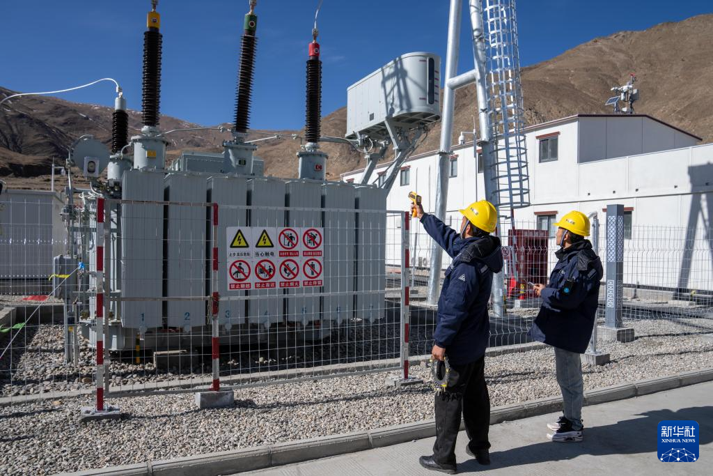 工作人員在給電站設備測溫(1月15日攝)。新華社記者 旦增尼瑪曲珠 攝