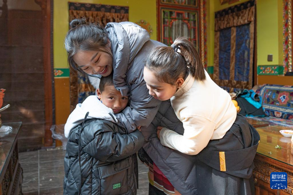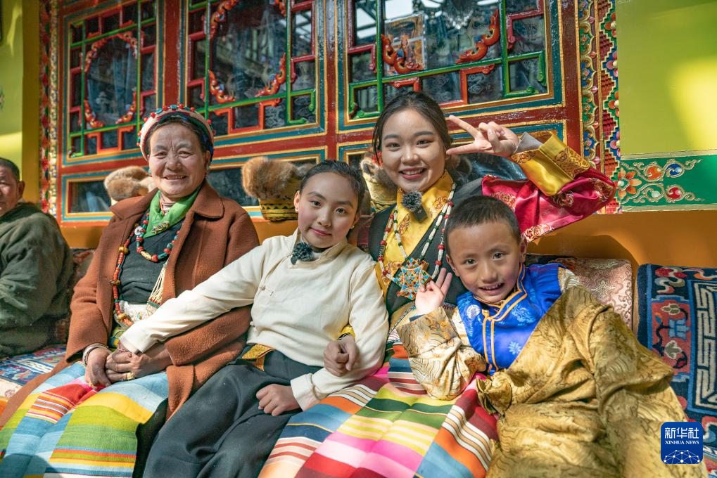 后來(lái)我們又去莫拉家拍攝了團(tuán)圓飯、換新藏裝等場(chǎng)景。拍攝時(shí),我需要穿藏裝和巴桑莫拉的女兒進(jìn)行互動(dòng),而當(dāng)天日喀則的氣溫已經(jīng)到了零下,她發(fā)現(xiàn)我的雙手冰涼后,全程都用自己的手捂著我的手,想讓我暖和一點(diǎn)。拍攝結(jié)束以后,小朋友們也圍在我身邊抱著我,想用自己的方式給我傳遞一點(diǎn)溫暖。
