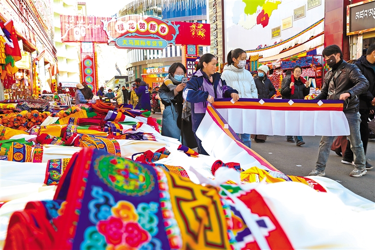 春節(jié)、藏歷新年臨近,年貨市場開始熱鬧起來。山南市澤當(dāng)鎮(zhèn)市民紛紛走進(jìn)大型商超和農(nóng)貿(mào)市場選購節(jié)日貨品,商戶備足貨源,推出讓利促銷活動,滿足各族群眾消費(fèi)需求,年貨市場呈現(xiàn)出購銷兩旺的良好態(tài)勢。