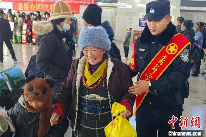 26日,為期40天的2024年春運(yùn)正式拉開帷幕。春運(yùn)首日,拉薩鐵路警方在西藏各大客運(yùn)火車站同步開展“平安回家路、鐵警在身邊”為民實(shí)踐活動,組織黨員民警先鋒隊(duì)、青年民警突擊隊(duì)在火車站區(qū)開展志愿幫扶、反詐宣傳等活動。