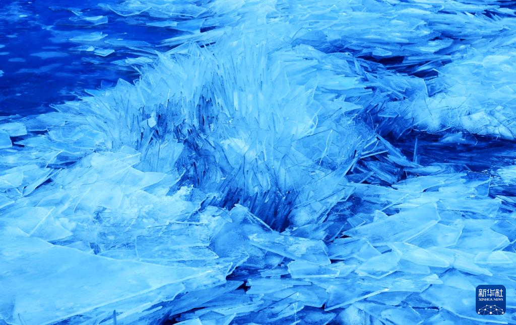 瑪旁雍錯湖面上的冰像碎玻璃一樣透亮(1月29日攝)。新華社記者 關明輝 攝