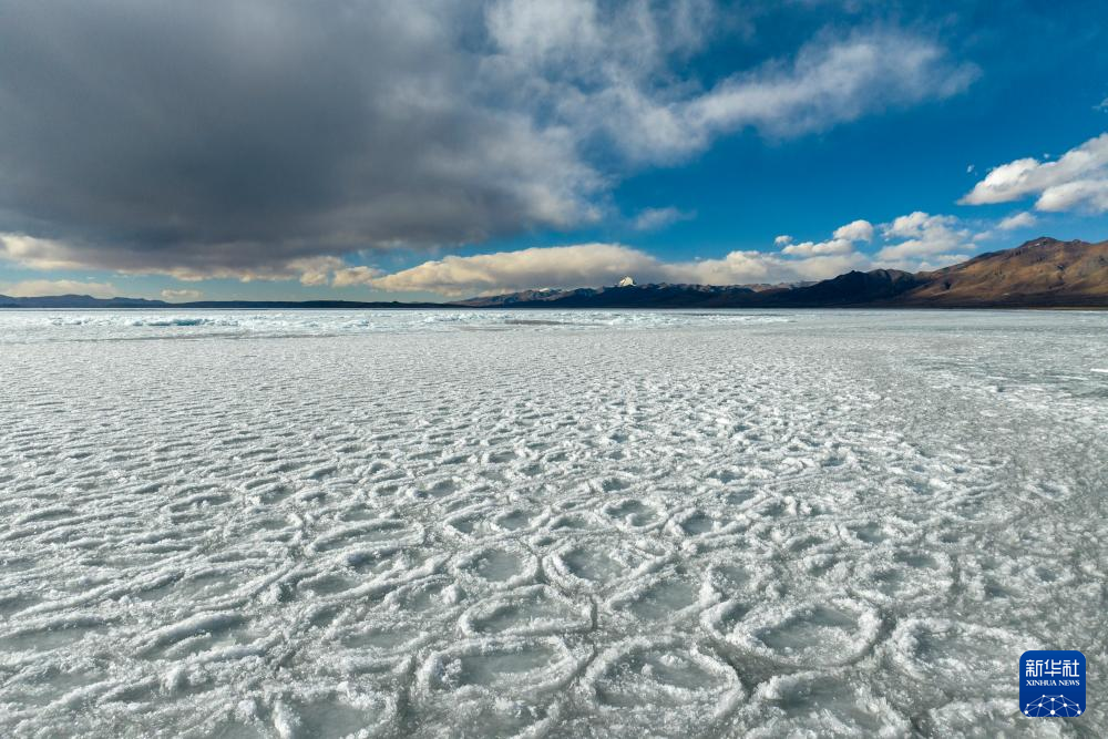 瑪旁雍錯湖面上的冰堆積在一起,形似波浪(1月29日攝)。新華社記者 關明輝 攝
