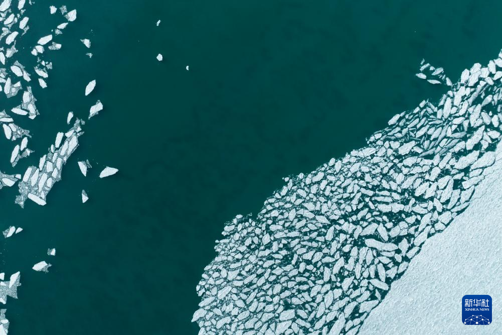 瑪旁雍錯湖面上的冰堆積在一起,呈現(xiàn)出各式各樣的造型(1月29日攝,無人機照片)。新華社發(fā)(旦增努布攝)