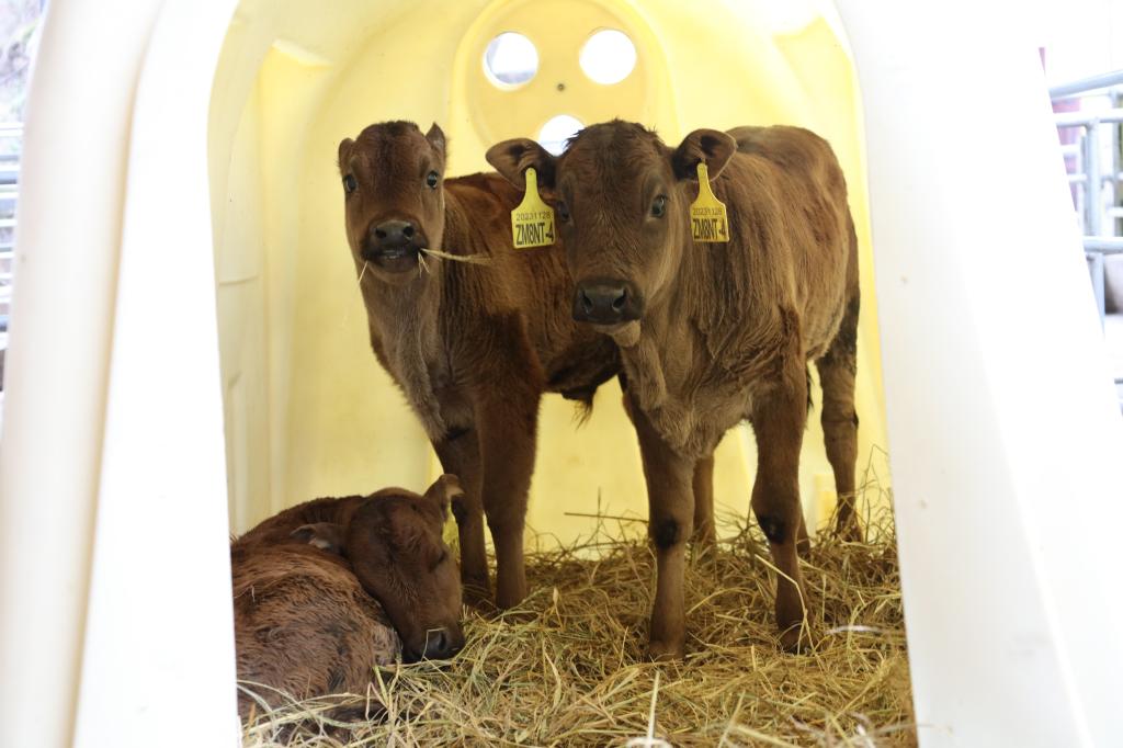 記者在位于云陽縣鳳鳴鎮(zhèn)的肉牛繁育場看到,8頭克隆牛目前狀態(tài)良好,其中1頭樟木牛和3頭阿沛甲咂牛為剖腹產(chǎn)。除了一頭剛出生3天的阿沛甲咂牛暫時臥著不動之外,其他7頭克隆牛活潑可愛。