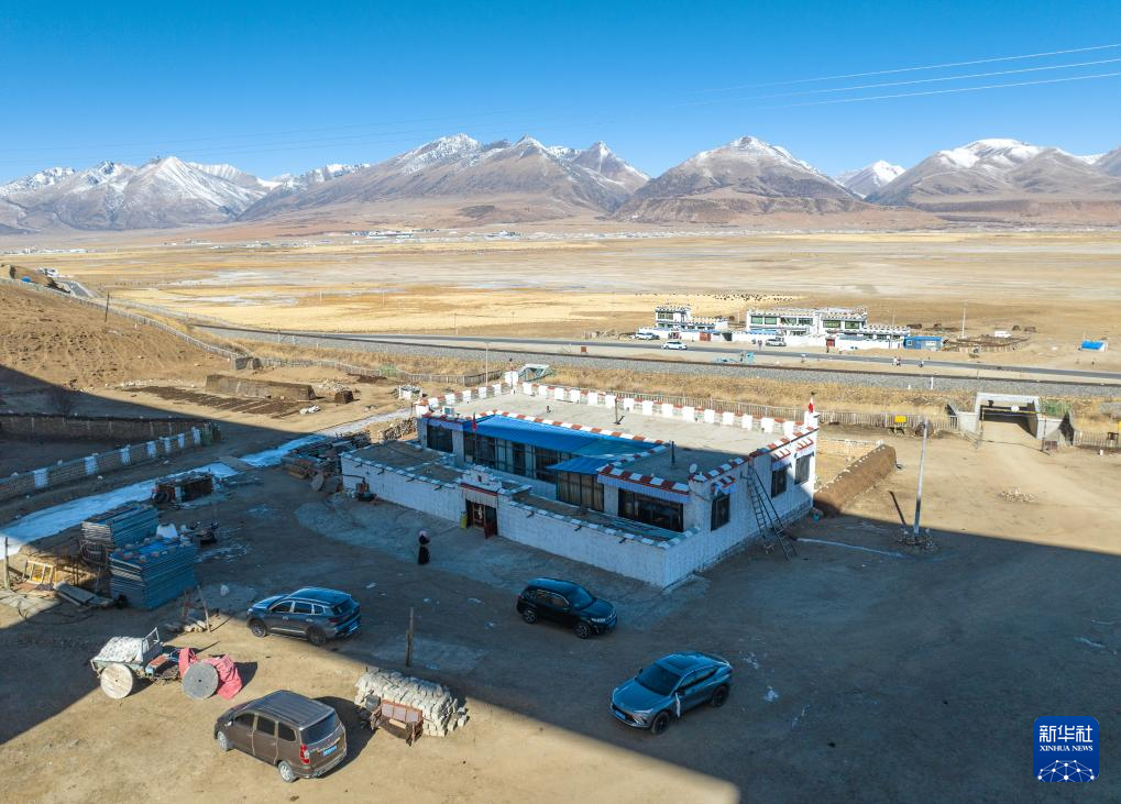 這是斯曲旺姆在西藏拉薩市當(dāng)雄縣公塘鄉(xiāng)甲根村的家(2月10日攝,無人機照片)。新華社記者 黃智琪 攝
