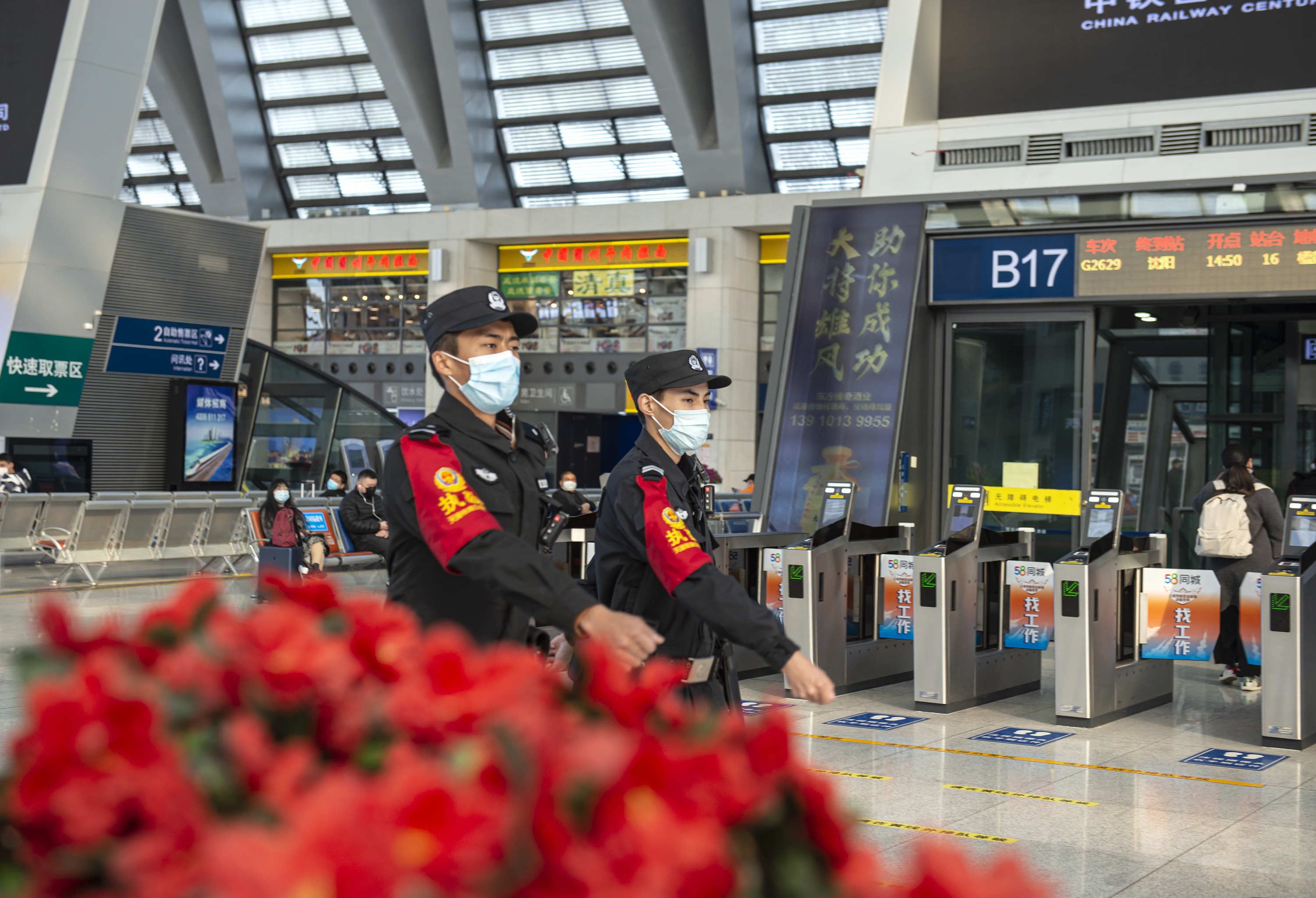 洛桑單巴和旺杰在車站巡邏。潘振東 攝