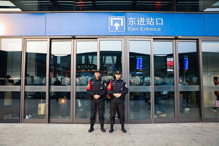 洛桑單巴和旺杰在車站站崗。潘振東 攝