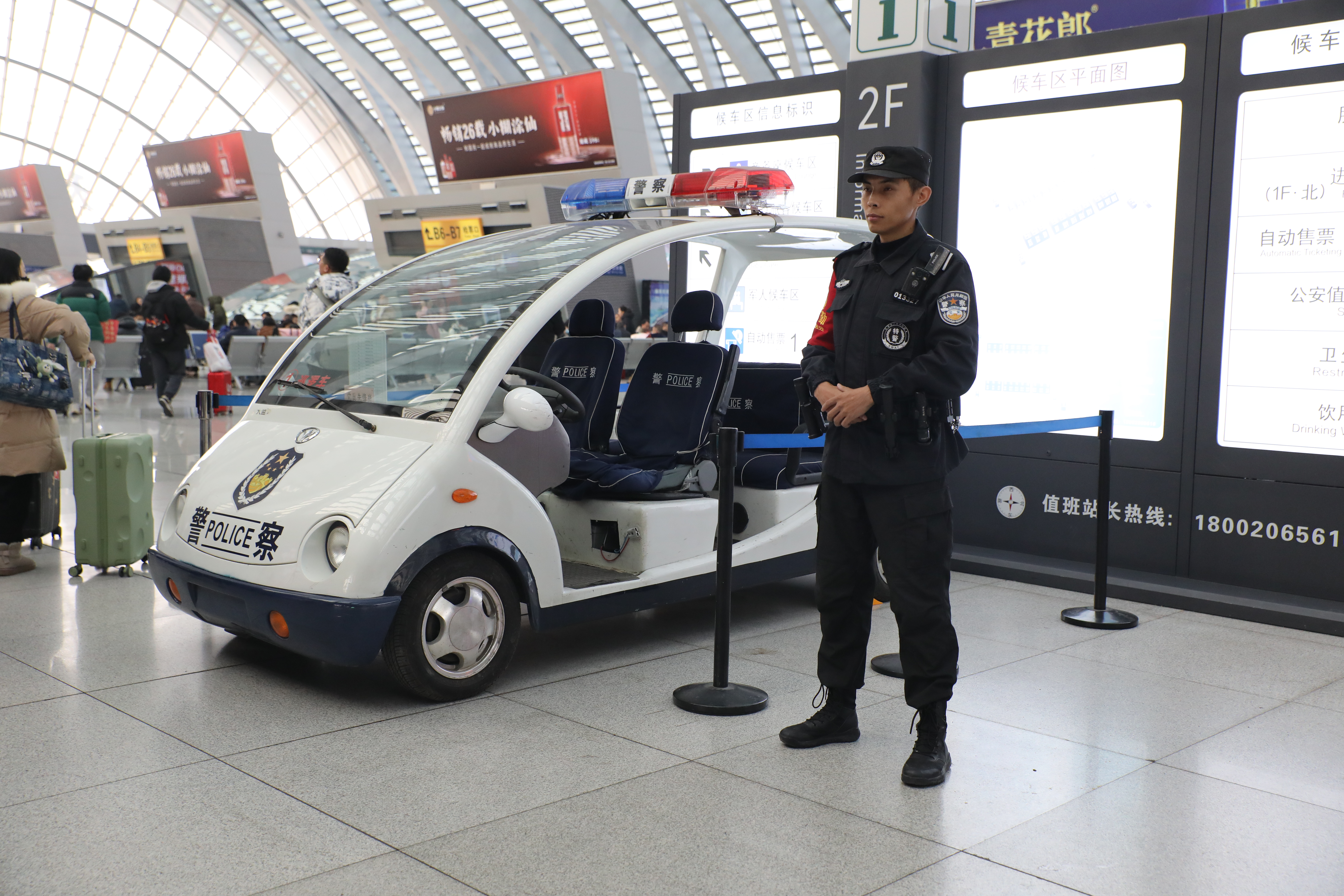 晨曦初露,大街小巷還在沉睡。雖已立春,寒意甚濃。燈火通明的進(jìn)站口、候車室、售票廳里卻人潮涌動,旅客們紛紛踏上歸家的路途。候車廳內(nèi),旺杰和洛桑單巴正在巡邏執(zhí)勤,一排閃爍的肩燈伴著鏗鏘的腳步穿過鼎沸的人群。那一縷康巴紅,是他們一往無前的力量源泉;那一抹警察藍(lán),是他們恪盡職守的不竭動力。