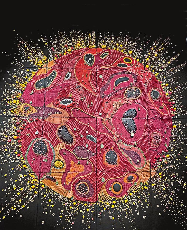 嘎德作品《紅太陽》 。記者 旦增蘭澤 攝