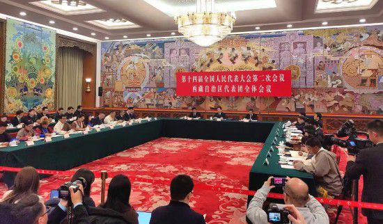 “西藏有大大小小1500多個湖泊,‘措’在藏語中就是湖泊的意思,游客常開玩笑說,這一路上,總是一‘措’再‘措’?!?月6日下午,出席十四屆全國人大二次會議的西藏代表團舉行開放團組會議,全國人大代表、西藏自治區(qū)主席嚴金海打趣地說。