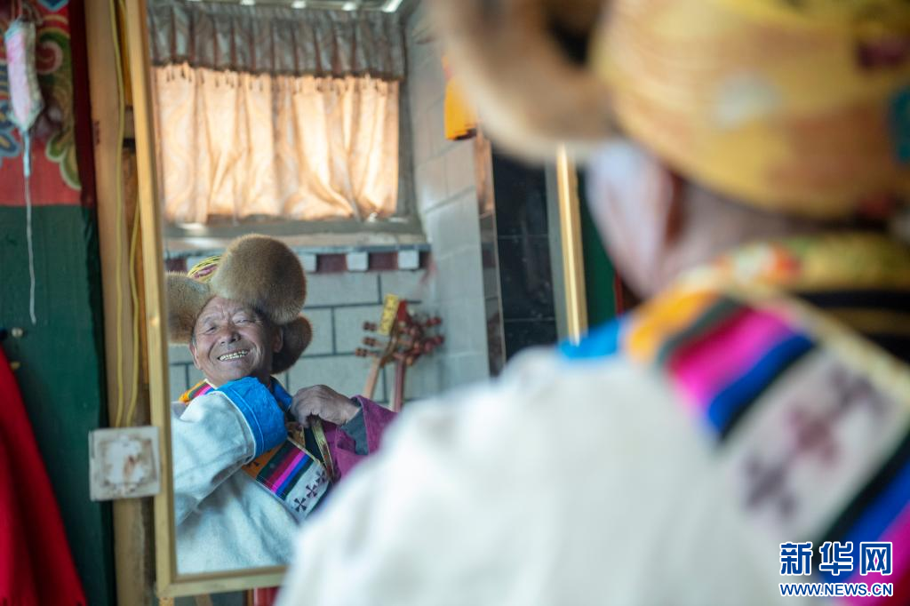 3月16日,克松社區(qū)居民格桑多吉在家準(zhǔn)備參加春耕儀式。新華網(wǎng) 旦增努布 攝