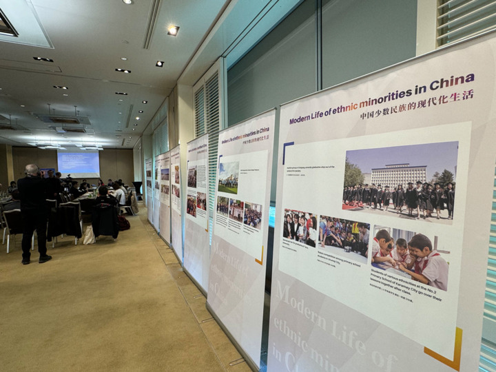 3月14日,由中國(guó)人權(quán)研究會(huì)主辦的“現(xiàn)代化發(fā)展中的少數(shù)民族受教育權(quán)——以中國(guó)西藏和新疆為例”主題邊會(huì)在瑞士日內(nèi)瓦舉行。圖為會(huì)議現(xiàn)場(chǎng)舉辦的“中國(guó)少數(shù)民族的現(xiàn)代化生活”圖片展。新華社記者石松攝