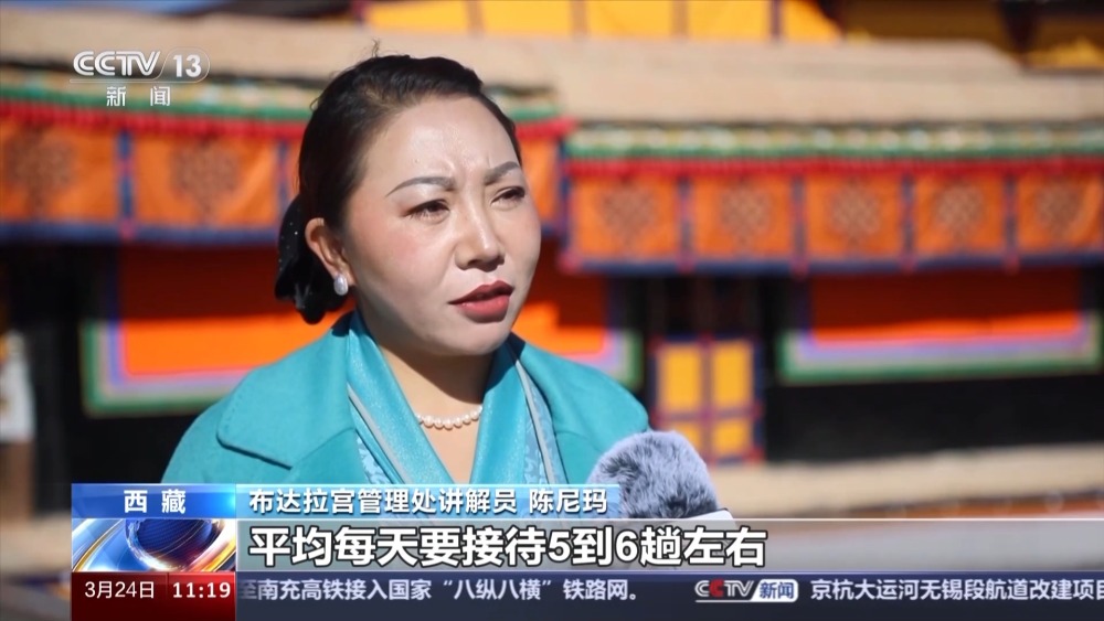布達(dá)拉宮管理處講解員 陳尼瑪:在高峰期的時(shí)候,平均每天要接待5到6趟左右,也就是一天要給50到60人左右進(jìn)行講解。