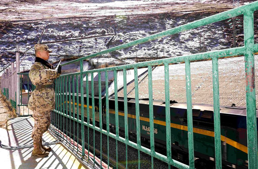 武警戰(zhàn)士在鐵路沿線巡邏。采訪對象提供