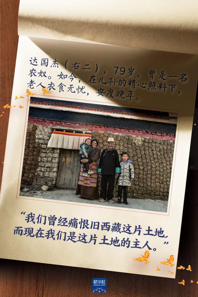“民主改革后我才真正睡了一個(gè)踏實(shí)覺,不再?zèng)]日沒夜地支差役,也不用挨農(nóng)奴主的皮鞭了?!蹦悄辏_(dá)國杰一家分得了50畝地、1頭牛、1匹馬和15只羊?!坝辛俗约旱耐恋?,干再累的活都是開心的。那一年我第一次吃糌粑可以吃到撐,真正體會(huì)到了做人的滋味。”