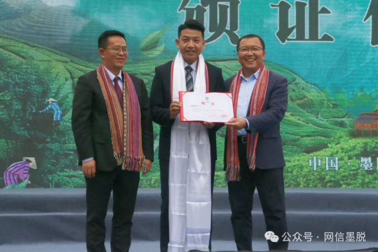 伴隨著春風(fēng)中浸染的裊裊茶香,開幕式上的一段視頻吸引了觀眾們的注意,視頻中丹臻群佩在央視主持人大賽的舞臺(tái)上向全國(guó)人民展示了墨脫通車十年以來的壯美巨變,講述了茶葉為墨脫人民的生活帶來的嶄新面貌,他的傾情推介帶領(lǐng)著觀眾再次感受了墨脫的極致美景,體會(huì)了新時(shí)代墨脫人民欣欣向榮的美好生活。在現(xiàn)場(chǎng),林芝市委常委、墨脫縣委書記符永波為丹臻群佩頒發(fā)“中國(guó)·墨脫文化旅游形象大使”證書。隨后,符永波宣布,2024年墨脫縣首屆茶文化旅游季正式開幕!