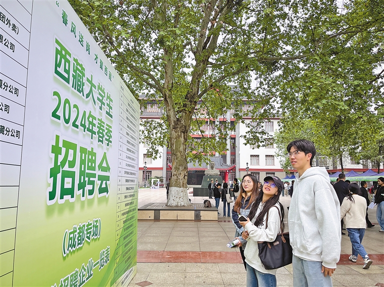 4月9日的招聘會(huì),是此次活動(dòng)的重要環(huán)節(jié)之一。招聘會(huì)在西南民族大學(xué)維舟廣場(chǎng)舉行,現(xiàn)場(chǎng)人頭攢動(dòng),拉薩凈土農(nóng)業(yè)發(fā)展有限公司等46家用工單位提供了688個(gè)崗位。