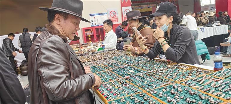 記者在展廳看到,參展商家攤位分布有序,前來(lái)購(gòu)買(mǎi)各種珠寶、藝術(shù)品的顧客絡(luò)繹不絕?;顒?dòng)現(xiàn)場(chǎng),匯聚了來(lái)自全國(guó)各地的珠寶商、藝術(shù)家、收藏家及投資者。博覽會(huì)期間,主辦方舉辦了珠寶、藝術(shù)品鑒定評(píng)估等商貿(mào)活動(dòng),以及珠寶藝術(shù)品講座、研討會(huì)等文化交流活動(dòng),為與會(huì)者提供了一個(gè)全面了解西藏珠寶及藝術(shù)品的機(jī)會(huì),同時(shí)也為珠寶商、藝術(shù)家和投資者搭建了一個(gè)交流與合作的平臺(tái)。文/圖 記者 張雪芳
