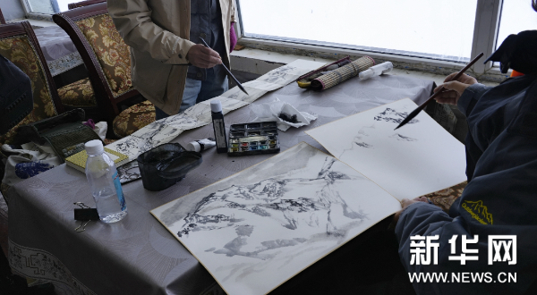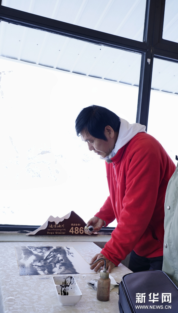 藝術家在達古冰川景區(qū)采風創(chuàng)作