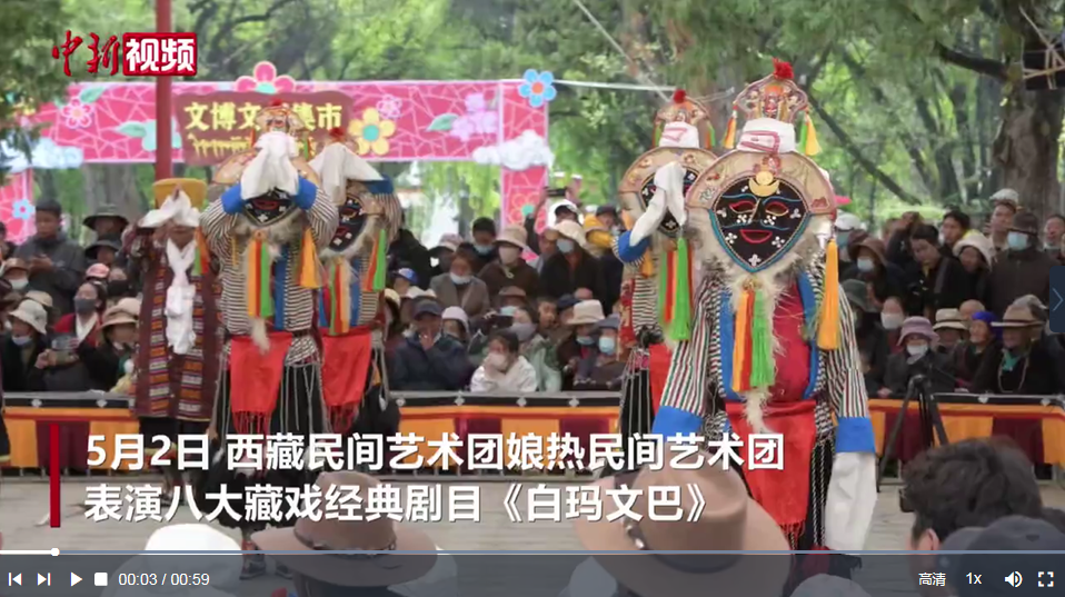 5月2日,西藏民間藝術(shù)團(tuán)娘熱民間藝術(shù)團(tuán)表演八大藏戲經(jīng)典劇目《白瑪文巴》?!拔逡弧奔倨冢敖?jīng)典劇目進(jìn)景區(qū) 特色演出進(jìn)劇院”惠民文藝演出在羅布林卡進(jìn)行,吸引市民游客爭(zhēng)相觀看。藏戲集說(shuō)唱、表演、歌舞、文學(xué)于一體,有著600多年歷史,被譽(yù)為藏文化的“活化石”。(李林 制作 劉鵬)