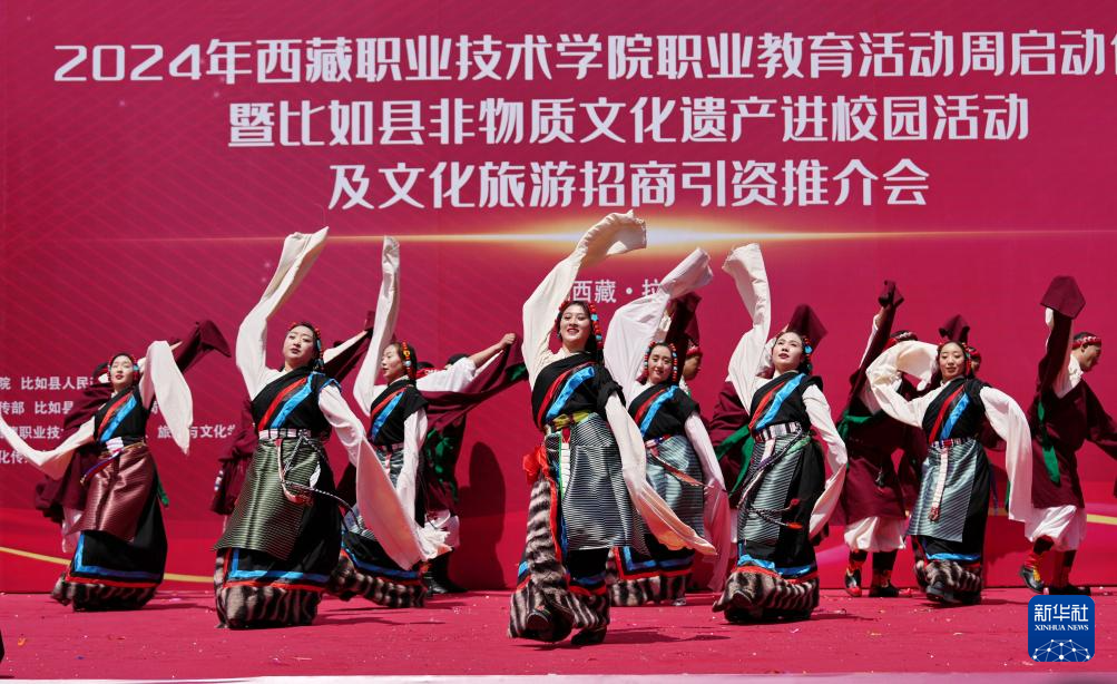 當(dāng)日,西藏職業(yè)技術(shù)學(xué)院職業(yè)教育活動周在拉薩啟動,那曲市比如縣民族藝術(shù)團非物質(zhì)文化遺產(chǎn)表演暨“鄉(xiāng)村振興 那曲奮進”旅游推介走進校園,激發(fā)人們對傳統(tǒng)文化和特色旅游的興趣。