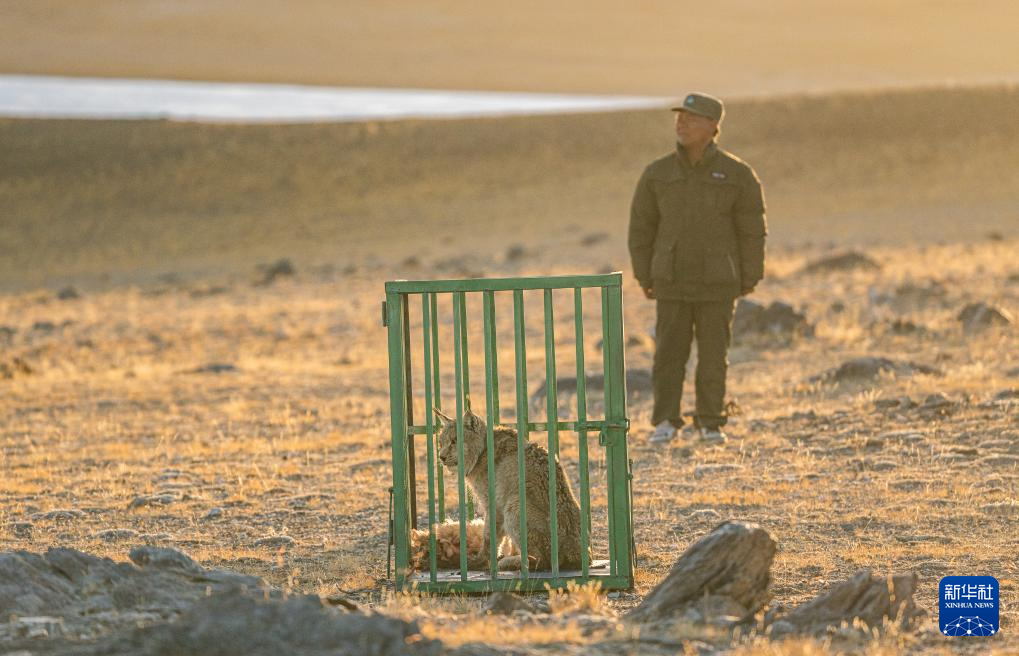 野生動(dòng)物專(zhuān)業(yè)管護(hù)隊(duì)員準(zhǔn)備將一頭猞猁放歸自然(5月12日攝)。新華社記者 丁增尼達(dá) 攝