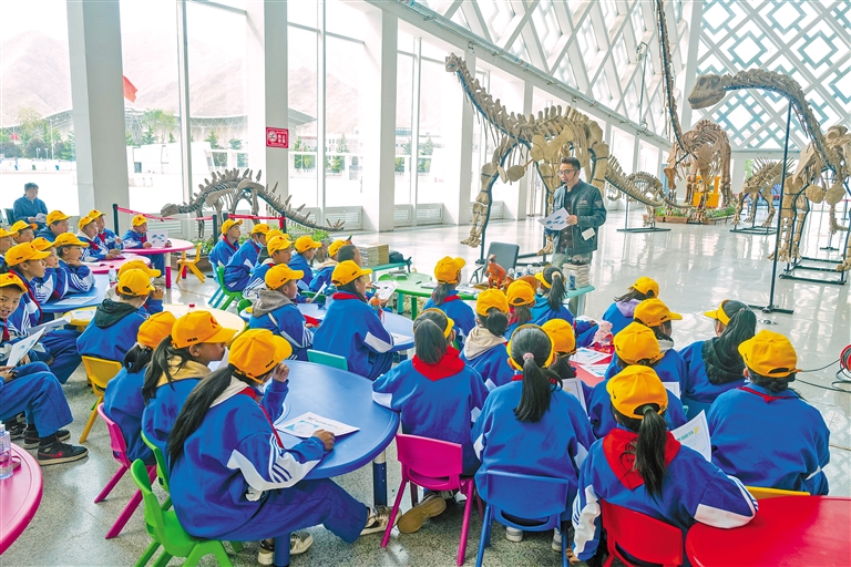 5月18日,在西藏自然科學博物館內,工作人員向拉薩市第三小學的學生講述西藏的自然歷史。記者 丹增群培 攝