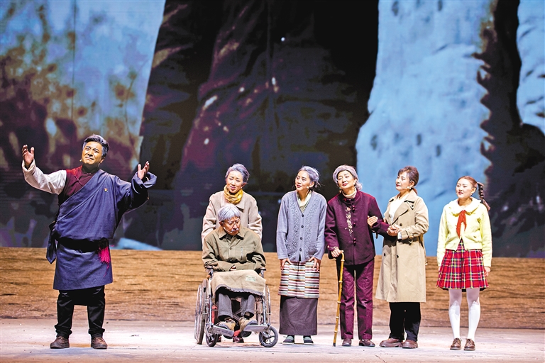 今年3月底,由西藏自治區(qū)文旅廳主辦的2024年格?;ㄑ莩黾镜谝患疚乃嚮顒印o(jì)念西藏百萬農(nóng)奴解放65周年文藝演出啟動,話劇《老西藏》作為開場劇在西藏大劇院連續(xù)演出3天。