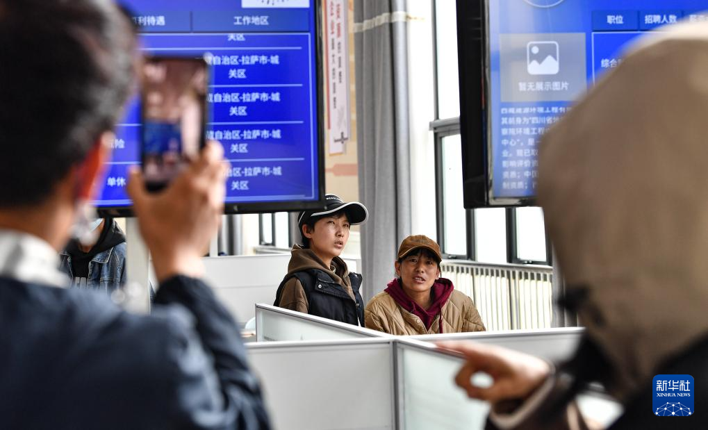 5月24日,求職者在招聘會現(xiàn)場與用人單位工作人員交流。新華社記者 晉美多吉 攝