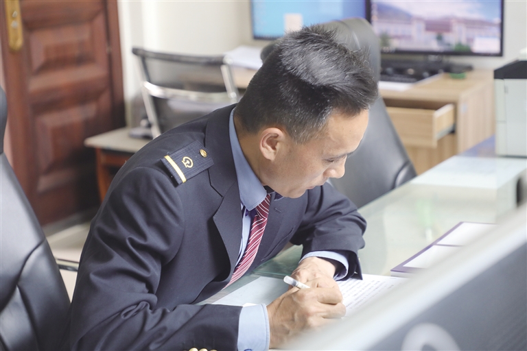 “這里的工作雖然看似單調(diào),實(shí)則責(zé)任很大?!辟R文貴身穿深藍(lán)色的鐵路制服,胸前佩戴著亮閃閃的工牌,顯得精神抖擻。他像一名嚴(yán)謹(jǐn)?shù)膽?zhàn)士,緊盯著操作臺(tái),確認(rèn)信號(hào),口呼手指?!∽鳛檐?chē)站值班員,賀文貴每天的任務(wù)主要是監(jiān)視列車(chē)進(jìn)路和區(qū)間動(dòng)態(tài),保證行車(chē)安全。工作中的他認(rèn)真負(fù)責(zé),嚴(yán)格執(zhí)行標(biāo)準(zhǔn)化作業(yè),他常說(shuō):即使單人值守,該有的程序、作業(yè)步驟一項(xiàng)都不少,作業(yè)標(biāo)準(zhǔn)必須嚴(yán)格執(zhí)行,保證作業(yè)安全。