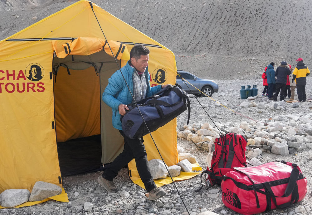 在珠峰登山大本營(yíng),哥哥多米尼克·德諾埃爾正在搬運(yùn)登山物資(5月18日攝)。新華社記者 丁汀 攝