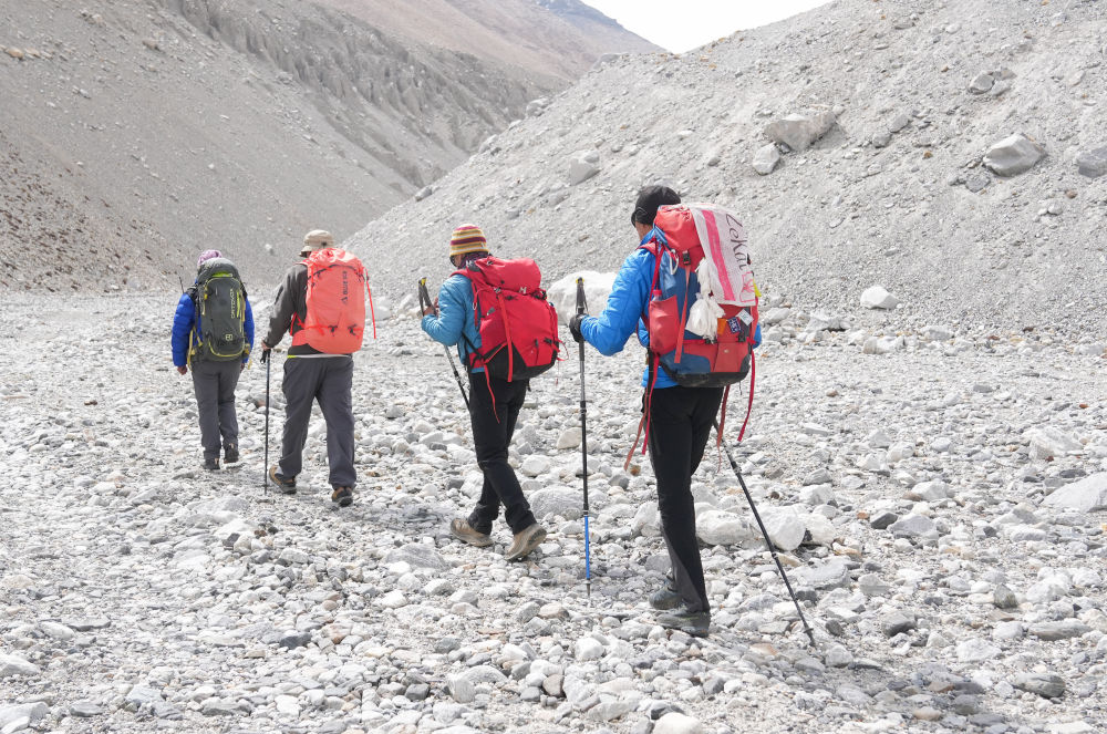 德諾埃爾兄弟和隊(duì)友們一起離開珠峰登山大本營(yíng),出發(fā)前往更高海拔的營(yíng)地(5月18日攝)。新華社記者 丁汀 攝