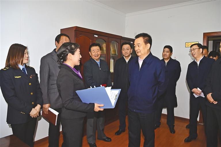 5月29日上午,自治區(qū)黨委書記王君正前往自治區(qū)市場監(jiān)督管理局、自治區(qū)商務(wù)廳等單位調(diào)研。這是王君正在自治區(qū)商務(wù)廳認(rèn)真聽取全區(qū)商務(wù)工作情況介紹。本報記者 旦增西旦 攝