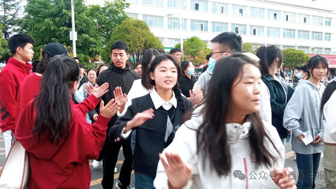 圖為拉薩市江蘇實驗中學考場學生考完后合影。記者 次仁平措 攝