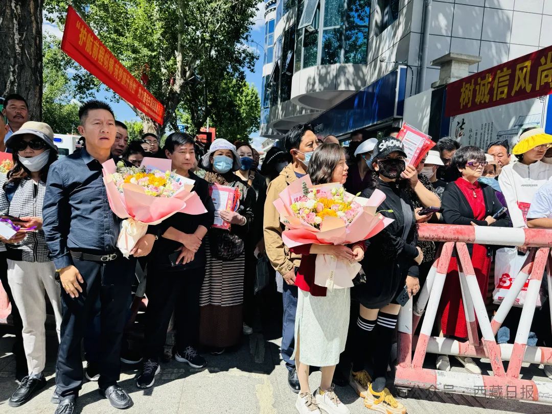 圖為拉薩中學考點,正在等候考生的家長。記者 德吉央宗 攝
