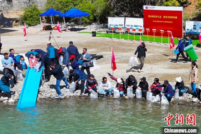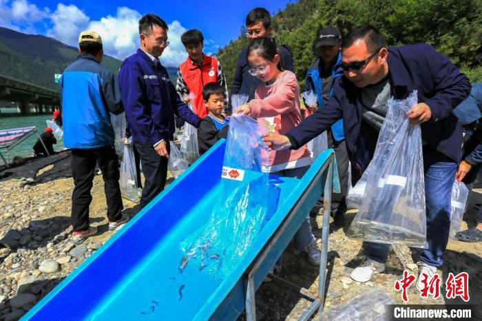 圖為6月6日,西藏林芝尼洋河魚(yú)苗放流現(xiàn)場(chǎng)。國(guó)家能源集團(tuán)西藏公司 供圖