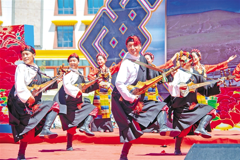 在非遺歌舞專(zhuān)場(chǎng)開(kāi)幕演出中,日喀則市開(kāi)場(chǎng)舞《溫巴頓》、那曲市二重唱《那曲拉伊》、阿里地區(qū)歌舞《果爾孜》、山南市歌舞《羊卓果諧》、林芝市貢布箭歌群舞《噠拉姆》、拉薩市歌舞《協(xié)榮仲孜》、鷹笛二重奏《金剛山崖上的雄鷹》等節(jié)目陸續(xù)上演,為市民和游客帶來(lái)了一場(chǎng)內(nèi)涵深厚的視聽(tīng)盛宴。