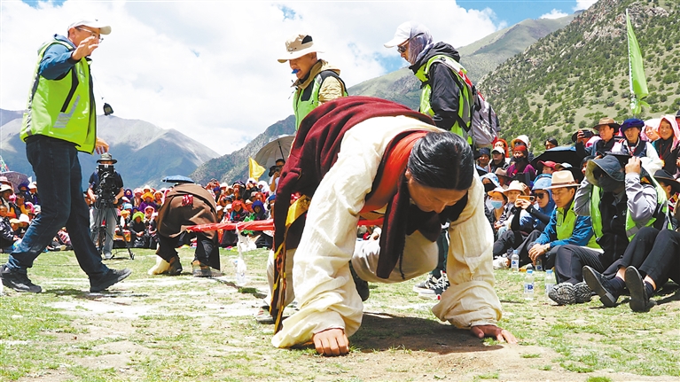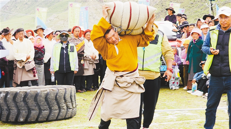圖為村民參加“大力士”比賽。