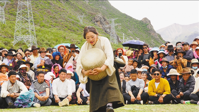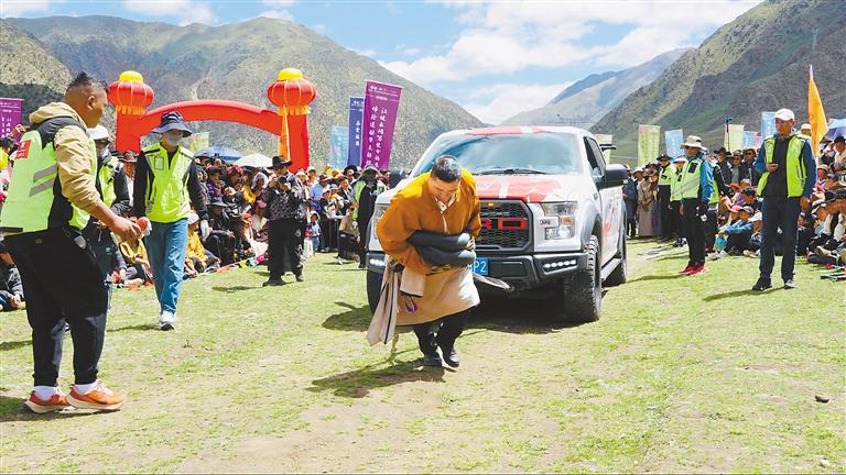 “‘繽紛四季·多彩林周’活動(dòng)內(nèi)容實(shí)在是太豐富了,我們沿途觀賞到了美景,而且還體驗(yàn)了西藏民俗風(fēng)情,現(xiàn)場(chǎng)看到村民們擠牦牛奶、手工制作奶制品、指尖技藝制作酥油花等。讓我們感到震驚的是藏族大哥、大姐的力氣真是太大了,能用繩子拉動(dòng)越野車,扛起百斤重的石頭,給我們帶來了滿滿的視覺盛宴。我是第三次進(jìn)藏,這次的收獲最多,讓我體驗(yàn)到了不一樣的西藏。”來自北京的游客張先生興奮地說。